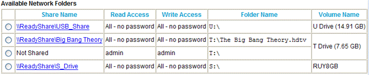 • ALL USB devices connected will have the same "Network" name. Default is ReadySHARE.